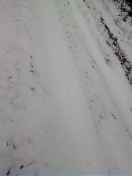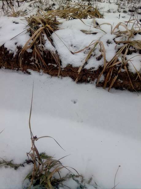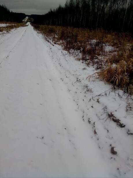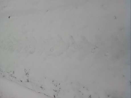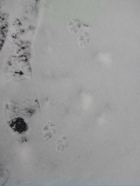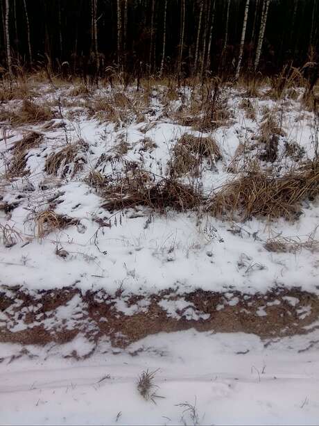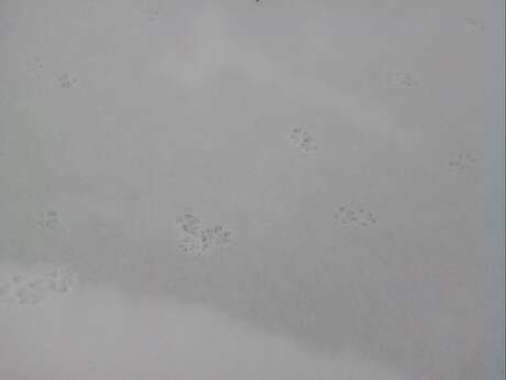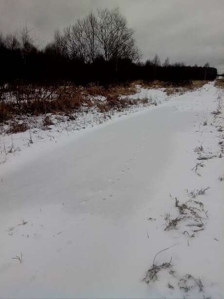 Сопровождали нас почти 2 км прогулки по просеке, местами следы в одну сторону шли так тесно, что скорее всего шли две лисицы одна за другой, параллельно шли такие же следы в том же направлении. Встречались следы собак и людей, но все они недалеко заходили на просеку и в основном пересекали ее потиропинкам, в отличии от этих следов, тянущихся очень далеко и заходящих в молодой березняк и кусты вдоль просеки. Длина следа около 6 см, длина моего следа 26 см. Там же были встречены следы взрослого лося и помет, возможно позже удастся сфотографировать